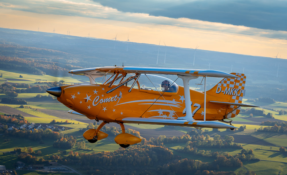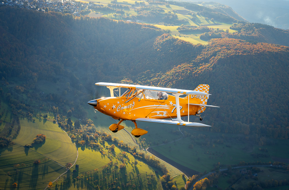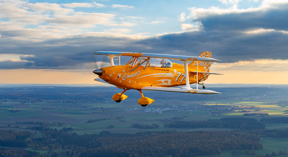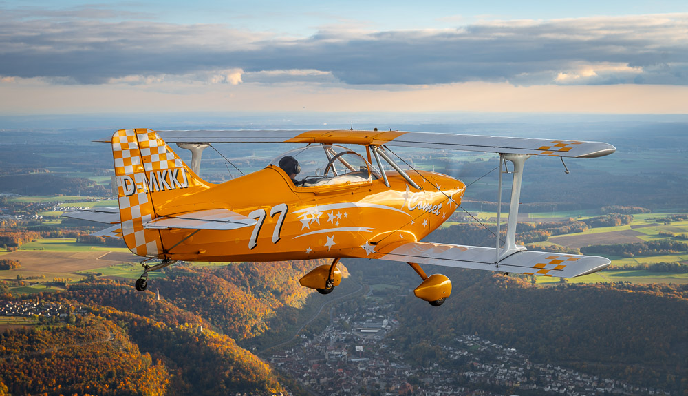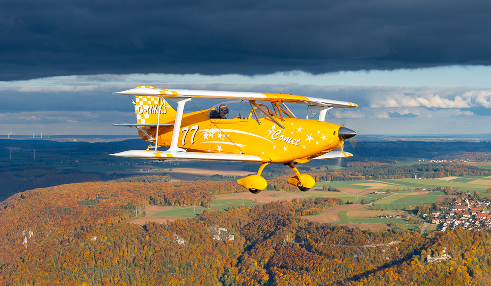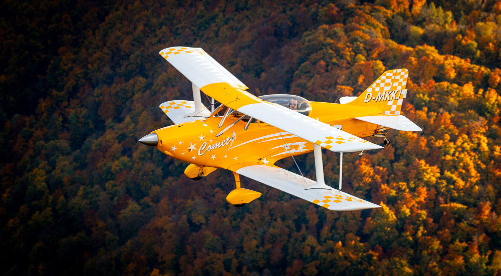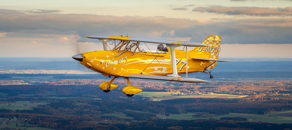 Vor ein paar Wochen hatten schonmal Fotos von der knallgelben FK-12 Comet im Programm. Da war der Wald noch grün und das Licht nicht soooo toll. Ganz im Gegensatz zu Mitte Oktober. Robin war mit seinem Himmelskörper nochmal am Platz, und wir haben das Ding nochmal aus fotografiert. Nun war der Wald aber maximal bunt, und der Himmel viel interessanter. Im Vergleich dieser beiden Bildserien kann man schön sehen, warum Fotografen so viel Wert auf „das Licht“ legen — und auf den Herbst. Er ist einfach unschlagbar was Luftbilder angeht 🙂