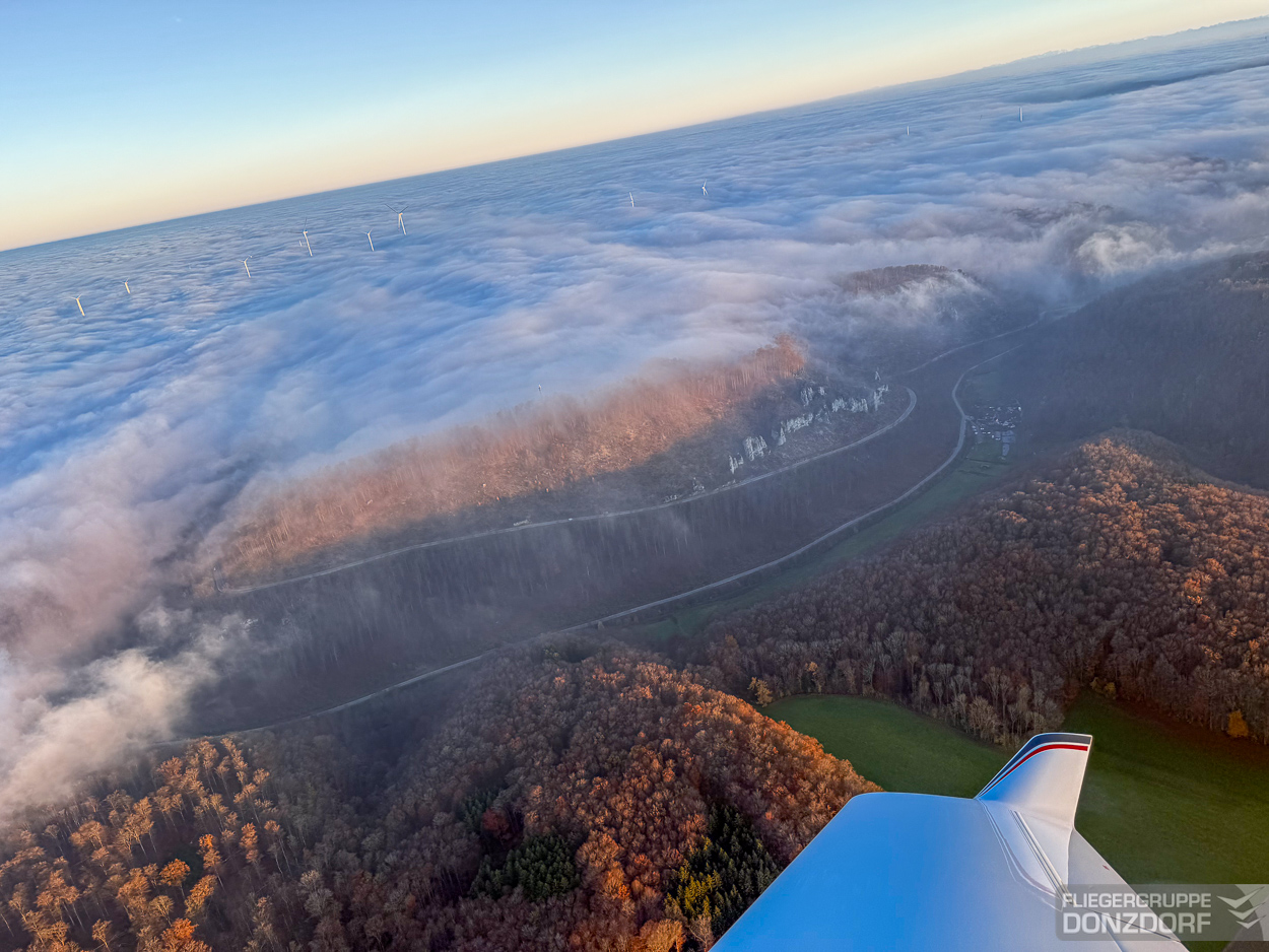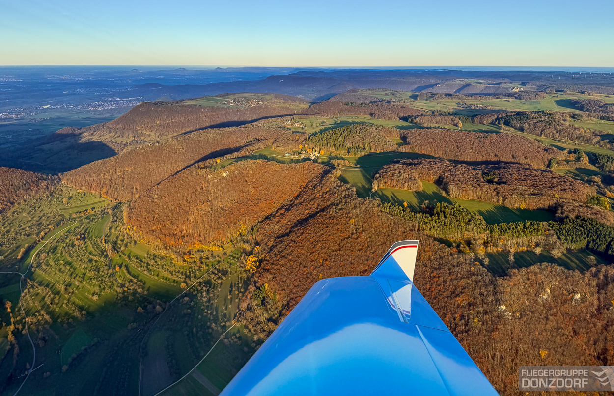 „Einfach rausziehen und fliegen“, das ist einer der großen Vorteile unserer ultraleichten Dynamic. Das Flugzeug steht ganz vorne in der Halle, und ist so leicht dass man es problemlos alleine rausziehen und wieder reinschieben kann. Das lädt zu spontanen Feierabendsflügen ein. Die bieten sich vor allem bei schönem Licht im Herbst an. Hier sind einige Impressionen von einem frühabendlichen Flug entlang der Albkante von vor ein paar Tagen. Hashtag WhyWeFly 🙂