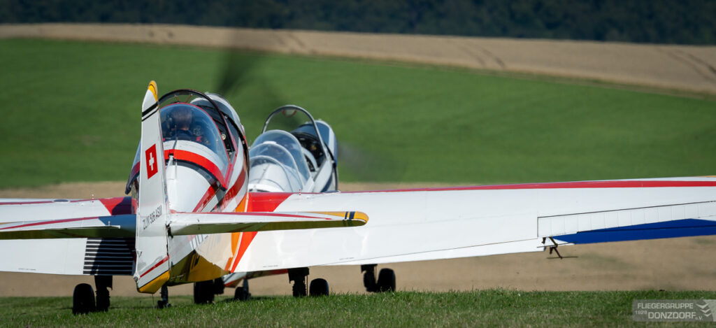 Am vergangenen Donnerstag und Freitag haben wir den Flugtag geprobt: ein paar unserer Show Acts haben ihr Programm geübt. Zum einen ist das sinnvoll, um am Flugtag in Übung zu sein und damit ein sicheres Display fliegen zu können. Zum anderen ist das auch vorgeschrieben: je nach Display müssen beispielsweise in den letzten 30 Tagen mindestens drei gleiche oder ähnliche Flüge geflogen worden sein.